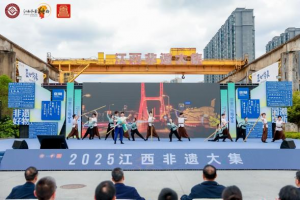 4月26日,由江西省文化和旅游厅与南昌市人民政府联合主办的2025江西非遗大集在南昌东湖意库盛大启幕。本次活动以非遗好物 国潮焕新为主题,通过六大沉浸式展区构建传统与潮流交融的文化盛宴。其中,江西财经大学设计与艺术学院音乐系舞蹈表演专业师生倾力打造的《朝阳洲木排号子》非遗舞蹈节目,在活色生香非遗展演秀中惊艳亮相,成为活动首日焦点。