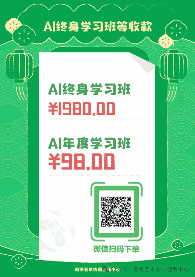 有人报名就开课,2026年3月1日前,五年AI剪纸创作规划及AI创作技巧课就陆续开课,随报随学。专家讲座2026年3月1日正式开课。