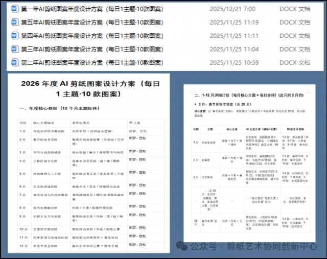 (4)每年赠送年度创作规划概况,每月赠送月度每日一主题创作10款剪纸作品创意指令本(电子版),只要你能坚持学习,连送10年;